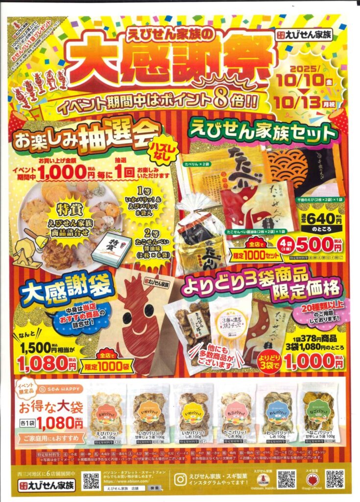 10月10日~10月13日の4日間、えびせん家族全店にて『えびせん家族の大感謝祭』を開催!