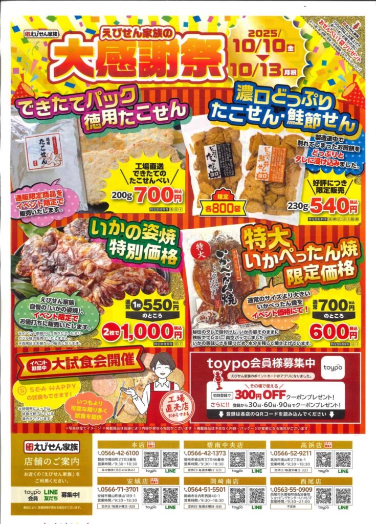 10月10日(金)~10月13(月)の4日間、えびせん家族全店にて